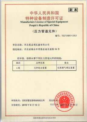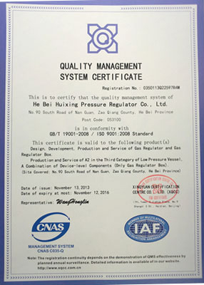 主導產品切斷式煤氣調壓器通過河北省經濟委員會、省標準計量局認可,獲得采用國際準認可證書